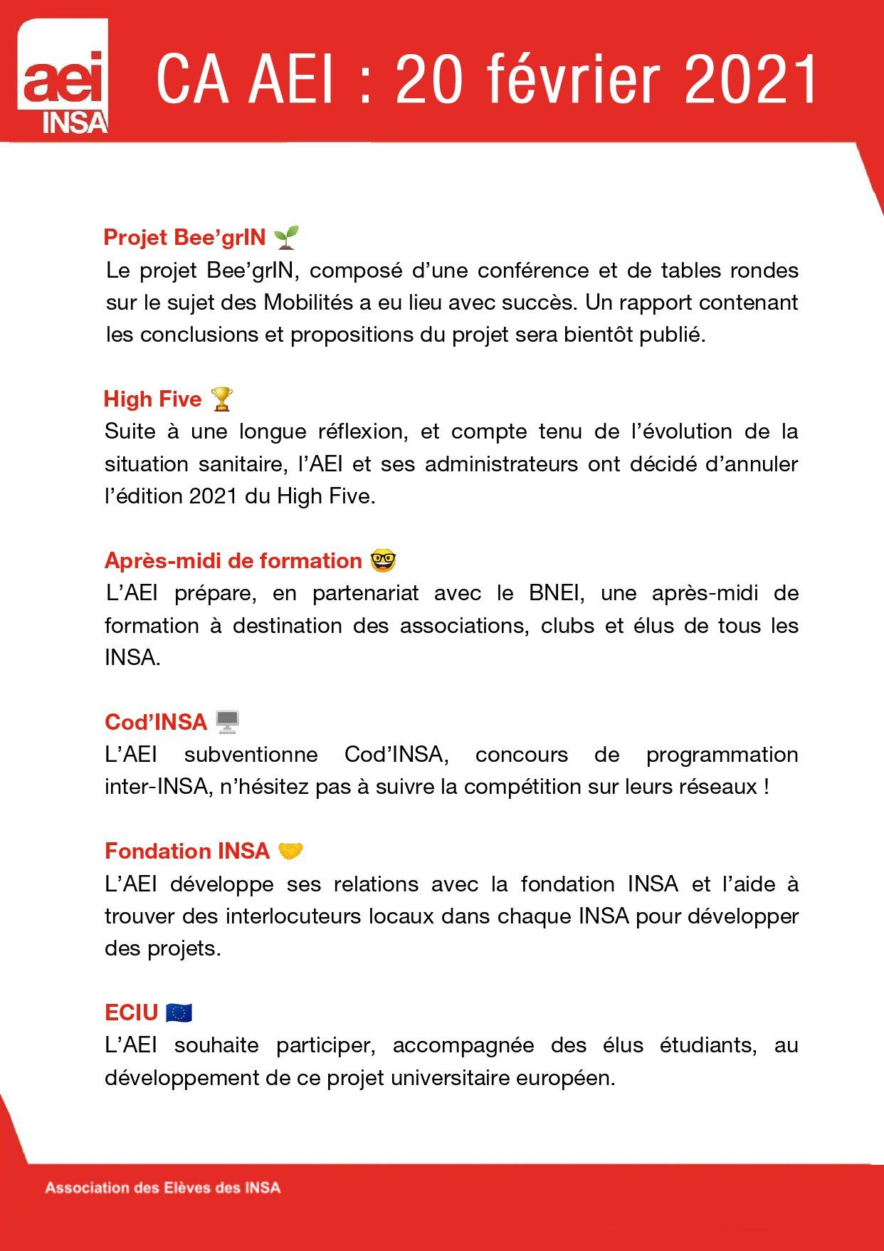 L'actualité administrative de l'AEI et des BDE/Amicales des INSA de France.